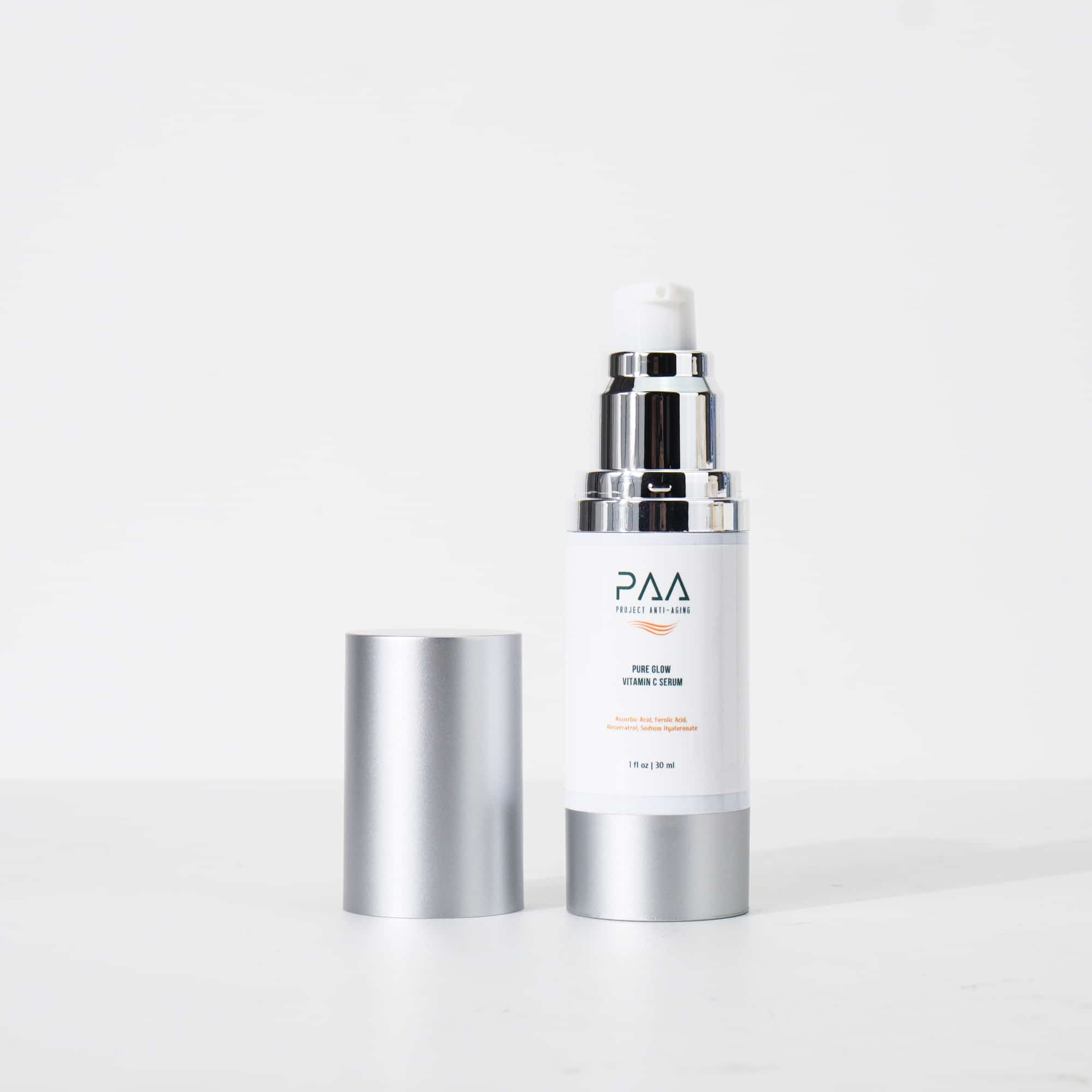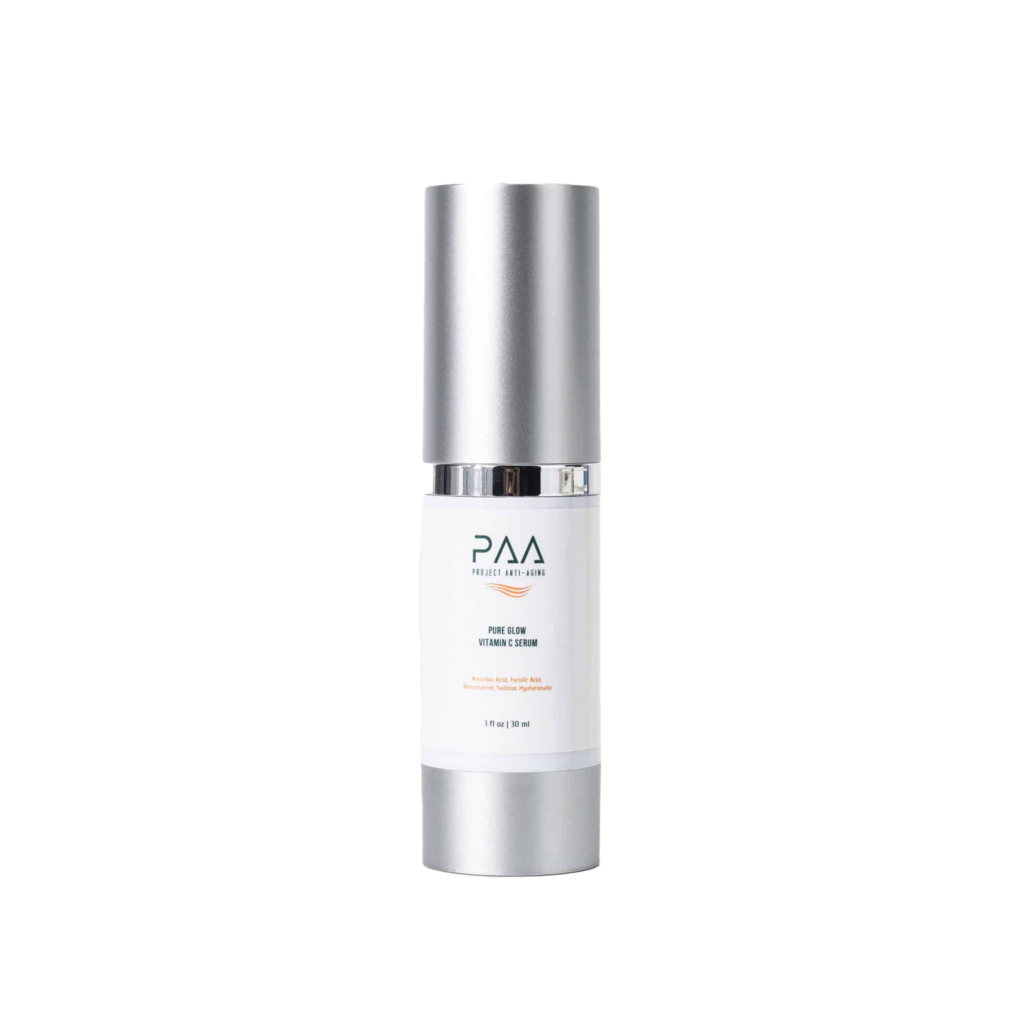 Project Anti-Aging Pure Glow 15% Vitamin C Serum with 1% Vitamin E & 0.5% Ferulic Acid Brightening Wrinkle-Reducing, Clinical-Strength Formula Lightweight, Fast Absorbing, Airless Pump Protection